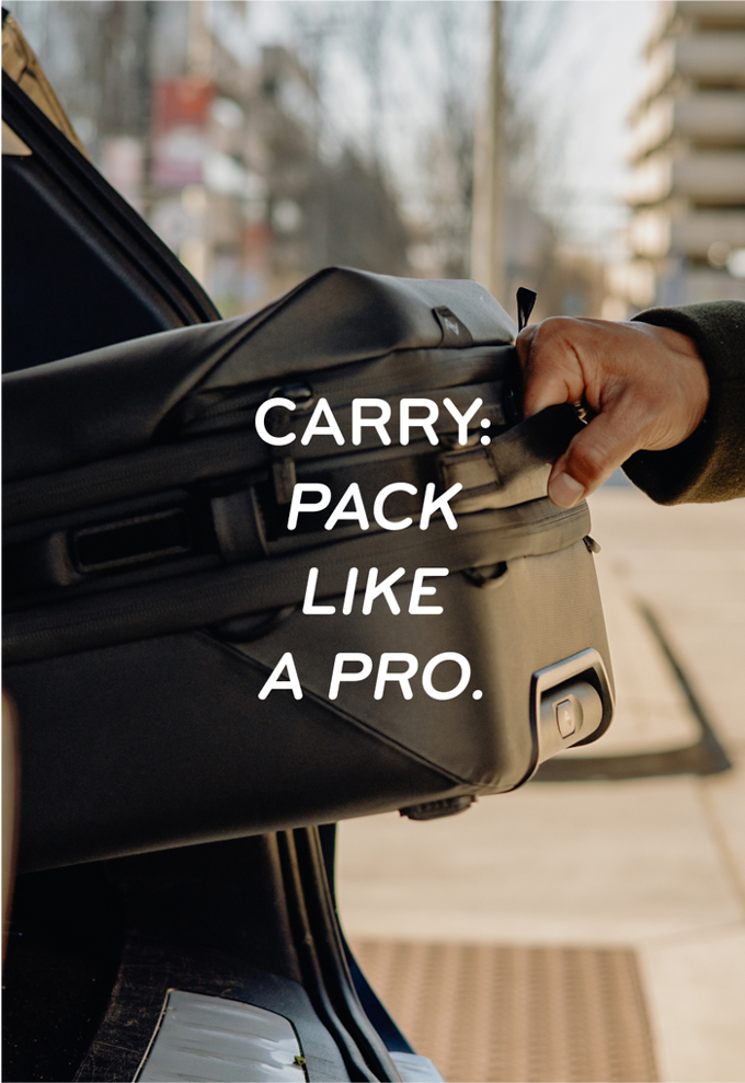 The Roller Pro's hybrid construction gives you the best of both the hard roller and soft roller worlds. The outside of the bag is made of our durable Versa Shell™ 550D Fabric, the culmination of our years of Peak Design bag design experience. Versa Shell™ is weatherproof, durable, and beautiful. Plus it is 100% recycled and Bluesign-approved!