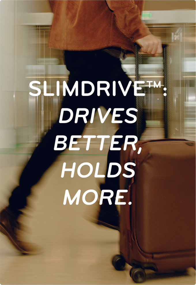 The backbone of Roller Pro is a totally proprietary trolley design that we call SlimDrive™. It drives smoother, packs slimmer, and feels better to interact with than anything else on the market.